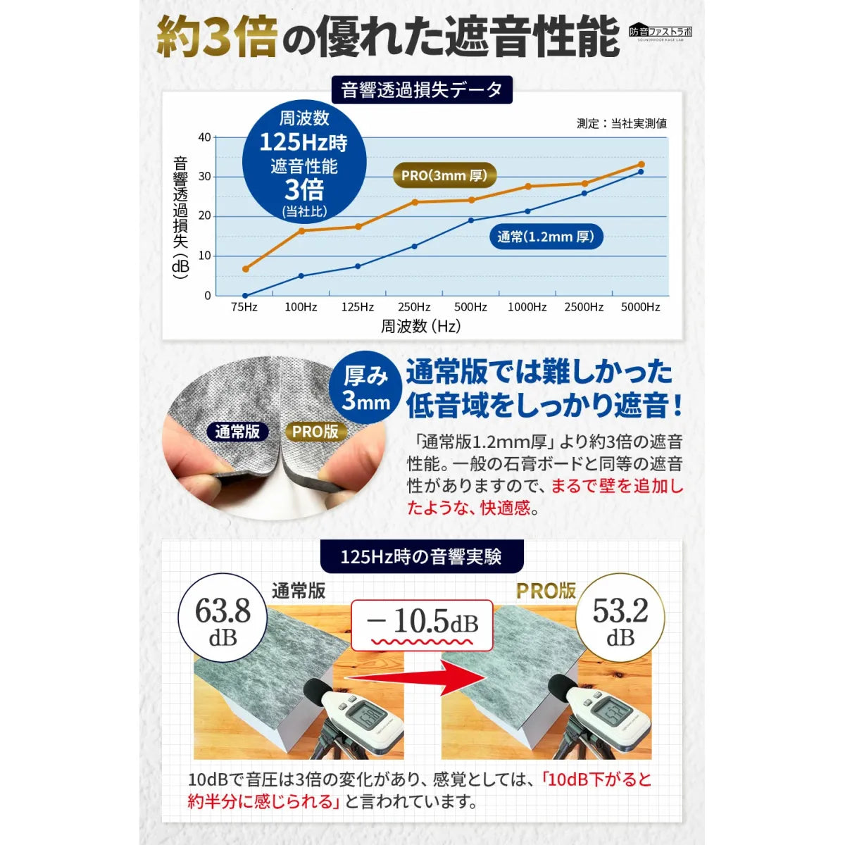防音ファストラボの遮音シート「saegiriPRO」は、従来品の約3倍の遮音性を誇る、プロ仕様の防音アイテム!