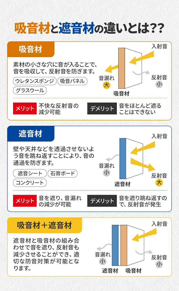 🔊 Q1. 吸音材と遮音材、何が違うの?