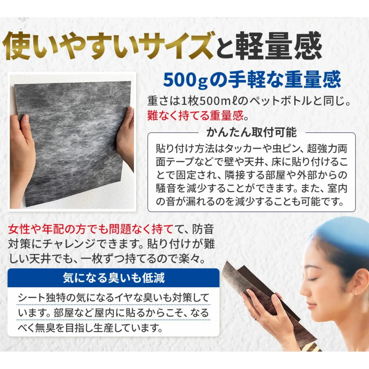 - ✅ 遮音シート「saegiri」 - 軽量&高遮音性(1枚190g) - サイズ:30cm × 30cm/厚さ1.2mm - 面密度:約2.1kg/m²