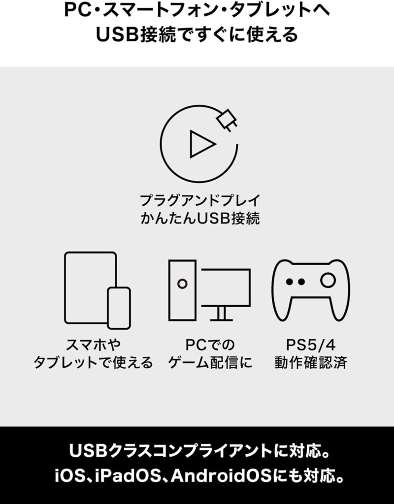 さらに、スマホ・タブレット対応と軽量設計により外出先でのライブ配信や弾き語り収録にも最適。