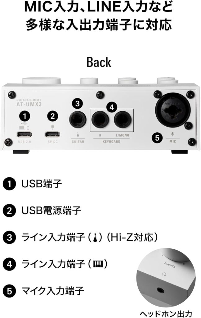 AT-UMX3は、オーディオテクニカが開発した配信・録音向けのUSBオーディオインターフェイス。
