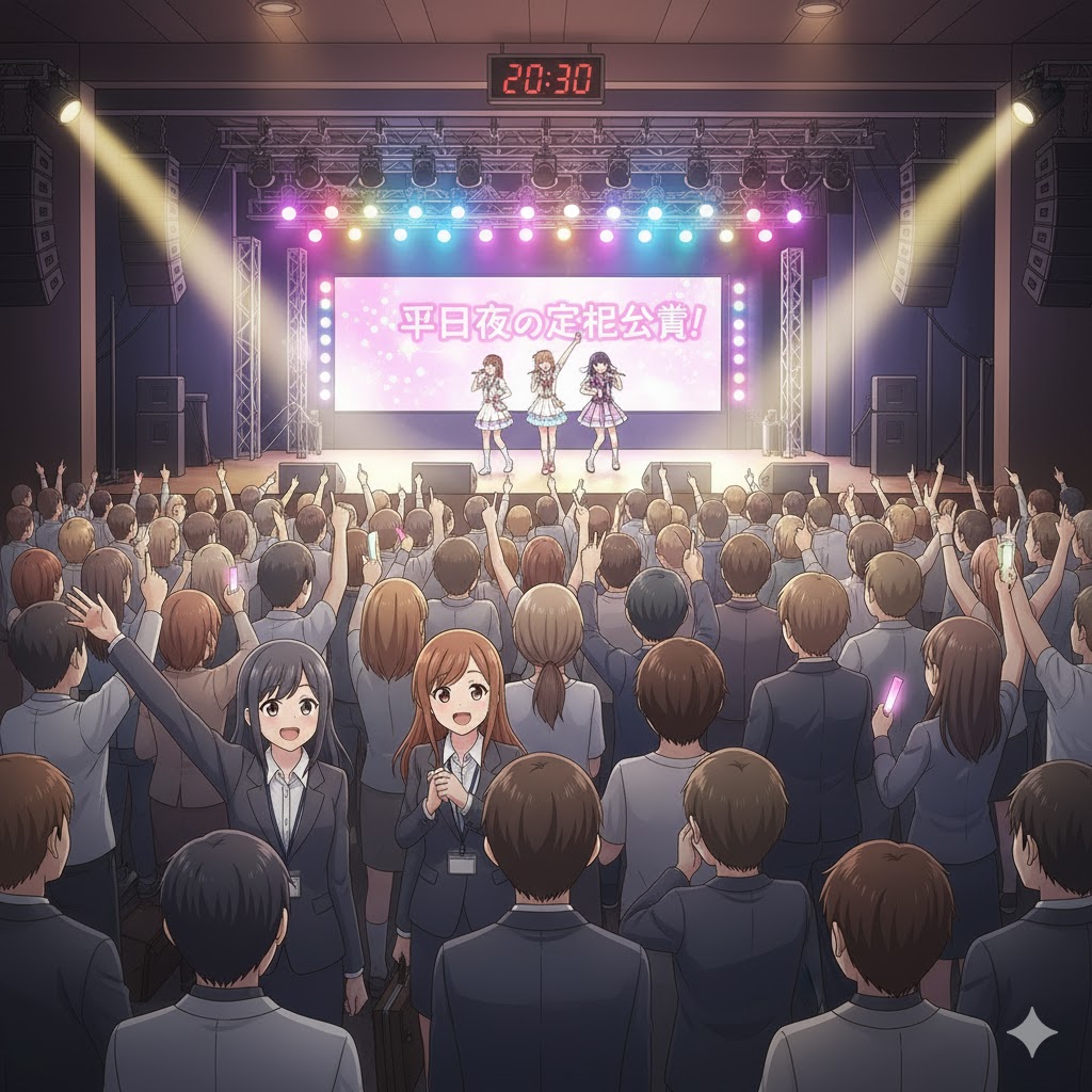 多くのアイドルグループが土日にイベントを集中させていますが、実は平日夜こそ定期公演に最適な時間帯です。